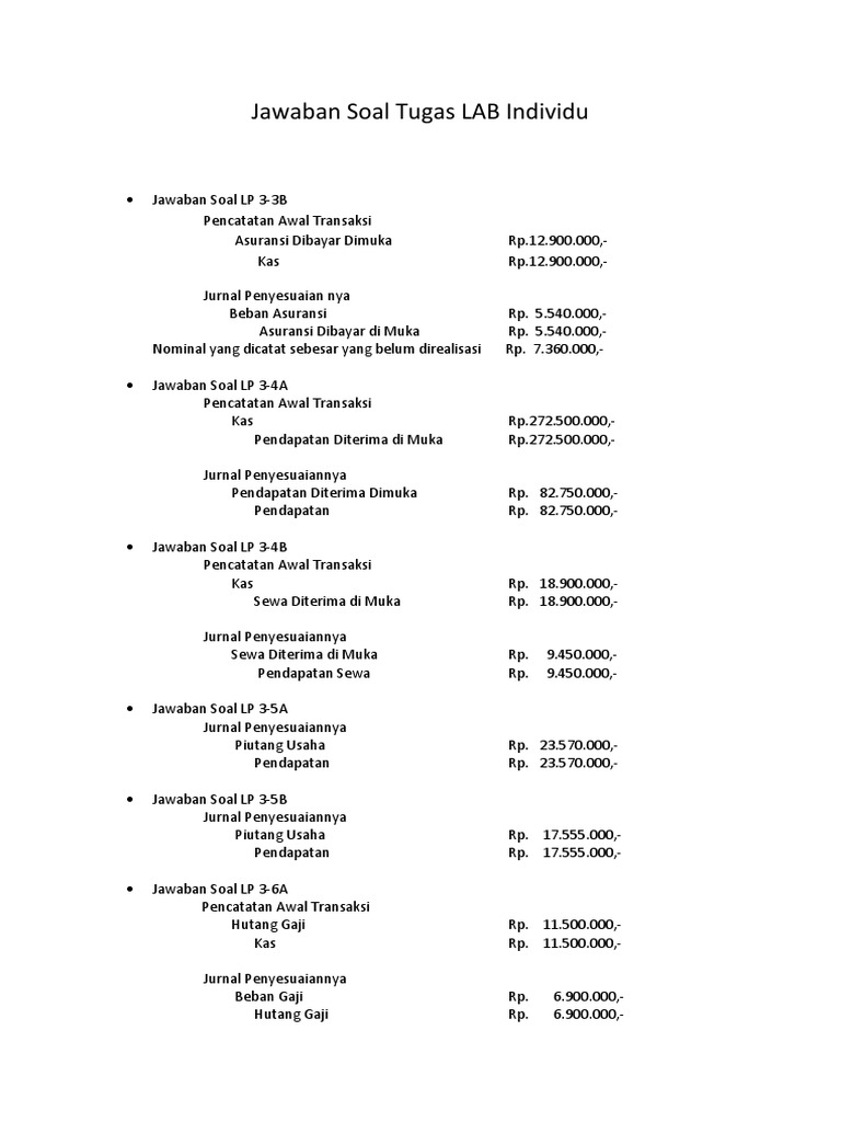 Soal Mid from imgv2-2-f.scribdassets.com Contoh soal ayat jurnal penyesuaian untuk perusahaan jasa. Klik di sini untuk informasi file lengkap contoh soal jurnal penyesuaian tentang pendapatan diterima dimuka selengkapnya. Pendapatan diterima dimuka harus diubahsuaikan setiap akhir periode dengan dibuatkan jurnal penyesuaian. Pendapatan yang diterima dimuka/ uang muka penjualan belum diakui sebagai pendapatan perusahaan sehingga dicatat sebagai kewajiban jangka pendek (current liabilities) yang disajikan pada laporan neraca perusahaan dalam posisi pasiva. Pendapatan diterima di muka adalah transaksi yang sejak awalnya dicatat sebagai utang (kewajiban), tetapi akan menjadi pendapatan di kemudian hari. Kapankah pendapatan diakui sebagai pendapatan jasa atau. Pendapatan diterima dimuka akan dicatat sebagai hutang atau sebagai pendapatan. Kedua istilah tersebut berlaku untuk konsep akuntansi yang sama dan mewujudkan karakteristik yang.